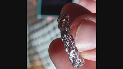Sacred Realms – Celtic Trinity Ring Inspired by Hawthorn in Rhodium-Finished Sterling Silver